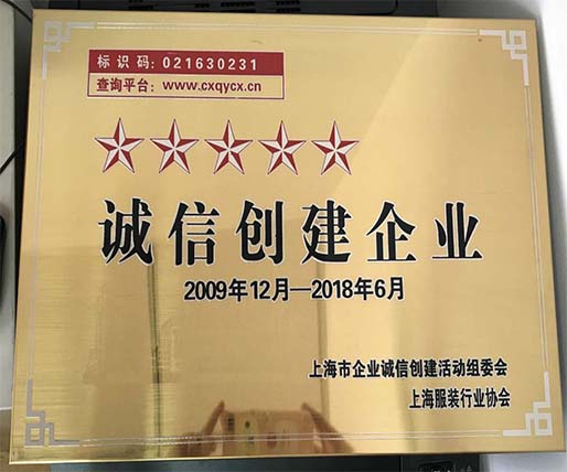在上海服裝行業(yè)協(xié)會舉辦的2017上海市企業(yè)誠信創(chuàng)建活動中,公司獲得五星銅牌。